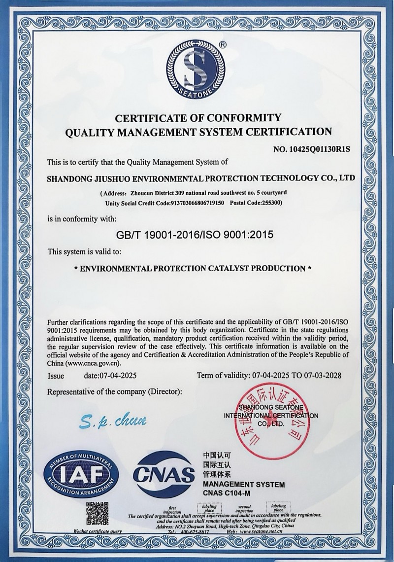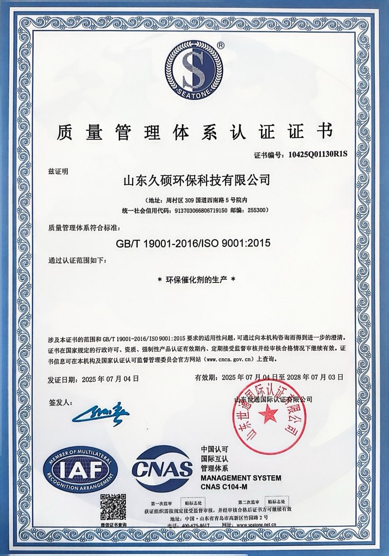 催化劑廠家山東久碩環??萍加邢薰局鳡I加氫催化劑,加氫保護劑等產品,強度高,